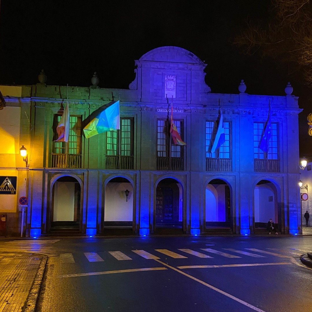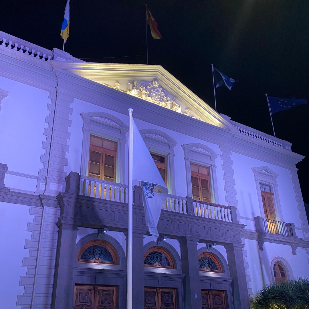 Entre los espacios iluminados se encuentran el Parlamento de Canarias, el Cabildo de La Palma, los ayuntamientos de Santa Cruz de Tenerife y La Laguna, el Castillo de Santa Bárbara en Teguise y la Fuente de la Plaza del Adelantado en La Laguna.