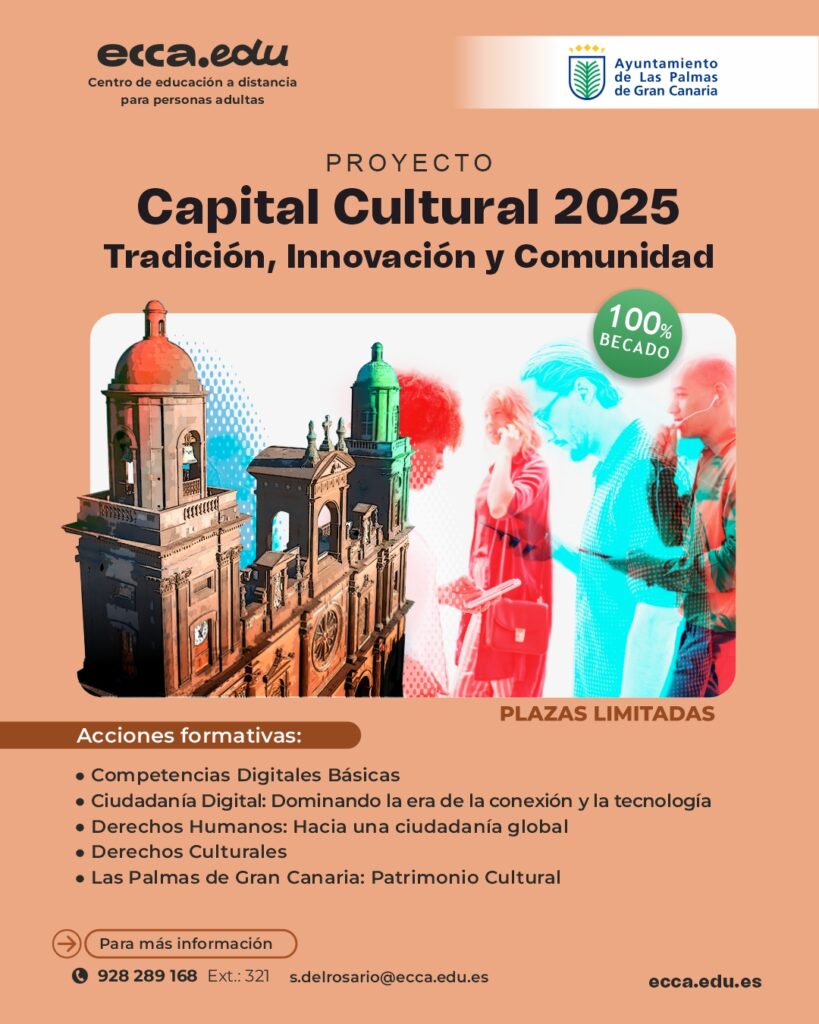 Este proyecto, totalmente becado y financiado por el Ayuntamiento de Las Palmas de Gran Canaria a través de su Concejalía de Cultura, tiene como objetivo principal impulsar la formación de los vecinos y vecinas de los barrios del municipio en áreas esenciales como las competencias digitales, la ciudadanía digital, los derechos humanos y el conocimiento de su propia cultura e historia.
