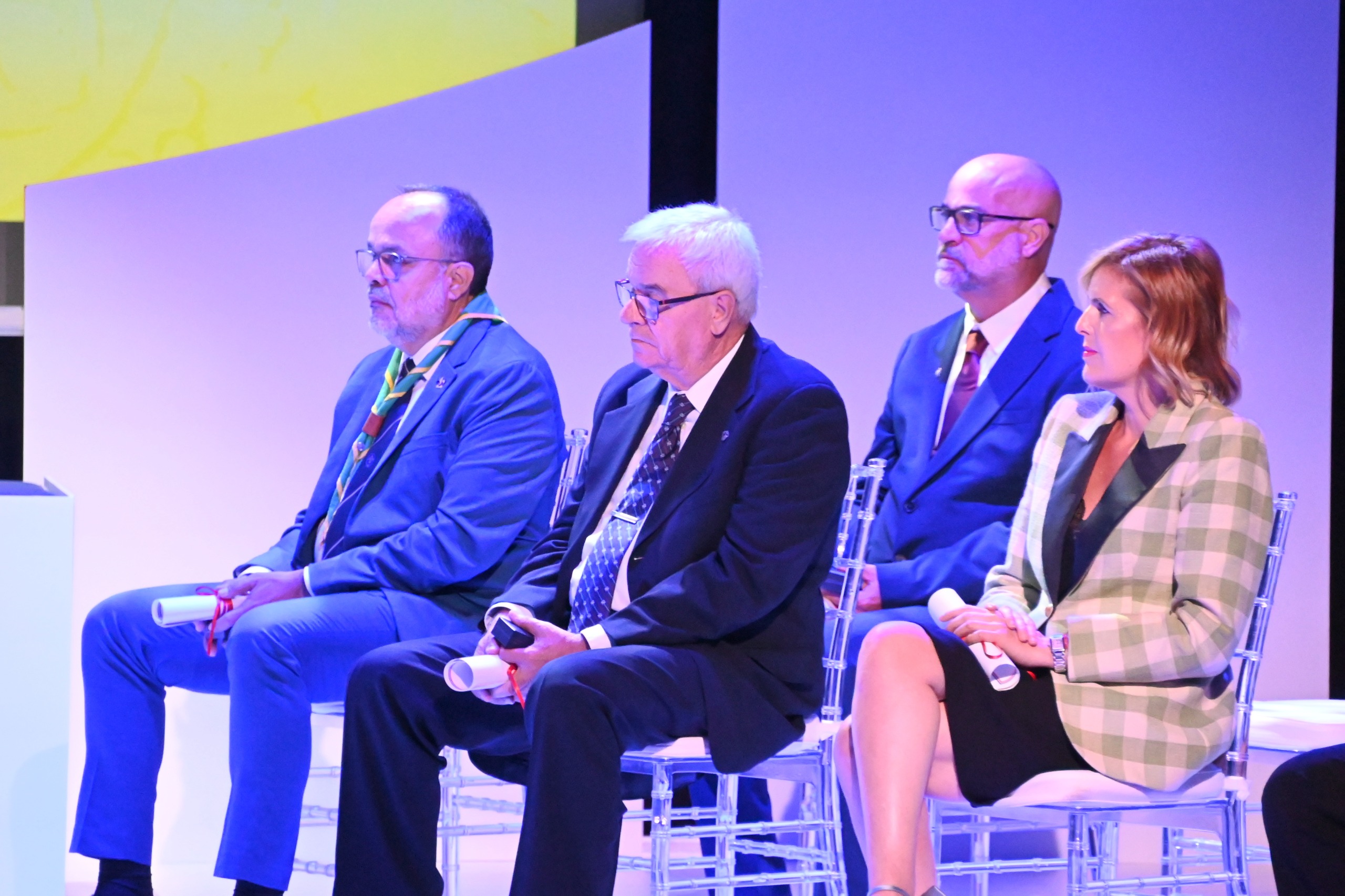 La Medalla al Mérito Social fue entregada por el alcalde, Juan Antonio Peña durante el acto de Honores y Distinciones de Telde, celebrado en el Teatro Juan Ramón Jiménez este viernes, 7 de noviembre. La directora gerente de ecca.edu, Gorety Almeida, fue la persona encargada de recogerla en nombre de toda la institución. El acto contó también con la presencia de un nutrido grupo de docentes de ecca.edu, que quisieron sumarse a este emotivo homenaje.
