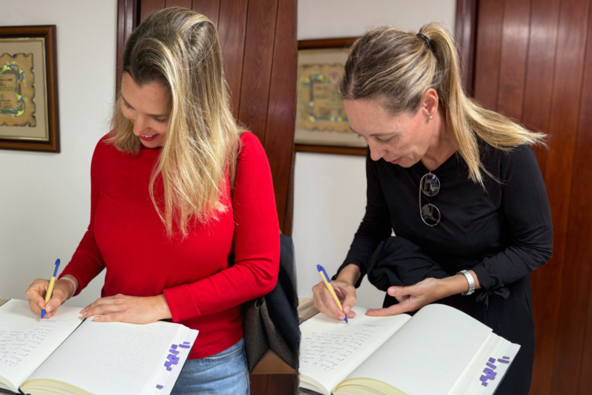El acto de firma del convenio contó con la presencia de Evelyn Alonso Rohner y Nayra Moreno Morales, Presidenta y Directora de la Fundación Sergio Alonso, y José María Segura SJ, director general de ecca.edu, un encuentro que sirvió para darles a conocer las instalaciones de ecca y el museo que recoge los 60 años de historia de la entidad.