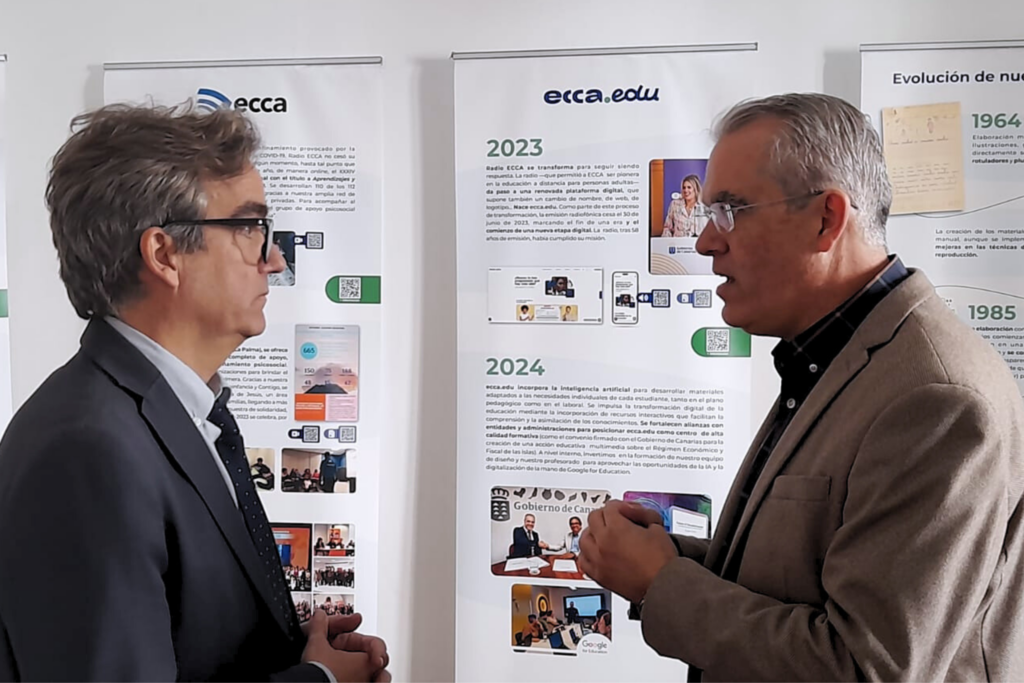 Nacido en 1965, ecca.edu es un centro de formación a distancia para personas adultas con presencia en las ocho islas canarias. Durante sus 60 años de trayectoria ha atendido a más de tres millones de personas aplicando una metodología propia, el Sistema ecca, que combina material multimedia, clases audiovisuales y tutoría personalizada para garantizar una educación accesible, flexible y de calidad. Trabaja de manera coordinada y en alianza con entidades públicas y privadas con el objetivo compartido de llevar formación a quien lo necesite.