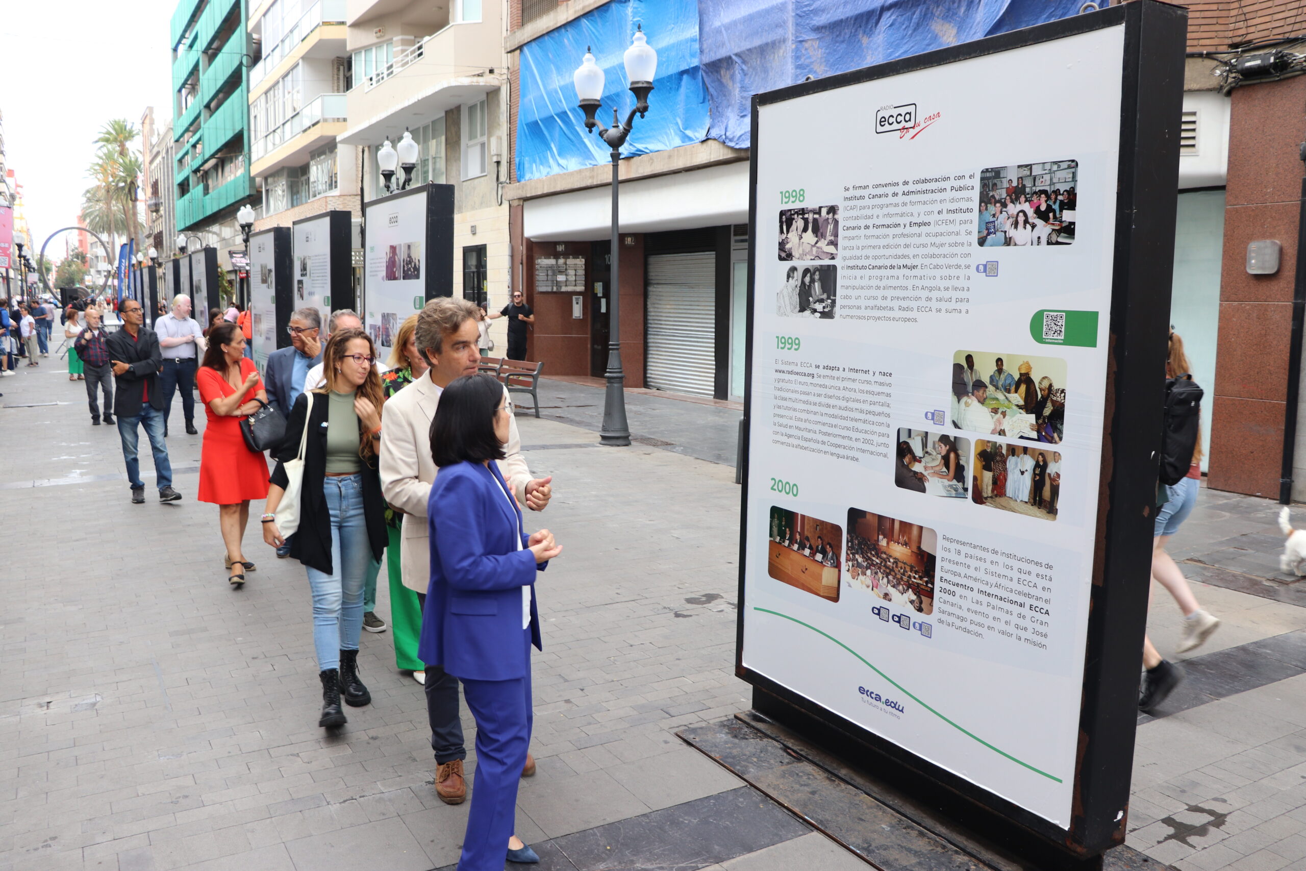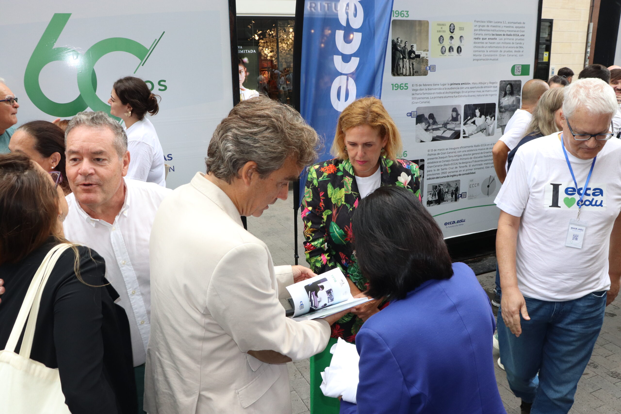 En el marco de su 60 aniversario, ecca.edu inauguró este martes, de la mano del Ayuntamiento de Las Palmas de Gran Canaria, la exposición 60 años transformando vidas a través de la educación en la céntrica calle Triana de la capital grancanaria. La muestra estará disponible hasta el 28 de septiembre y busca poner en valor el legado de una institución que, desde sus inicios en 1965 con la radio, ha ofrecido oportunidades de formación y progreso educativo a más de tres millones de personas.