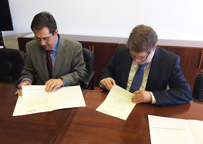 | Antonio Martinón y Lucas López en el momento de la firma |