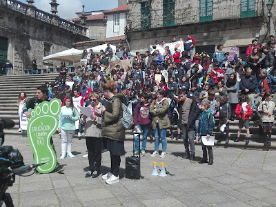 Las calles de Compostela se convirtieron en una fiesta, dinamizada por más de 200 niños y niñas gallegos que defendieron el derecho de todas las personas a tener una educación de calidad. Hoy, en el mundo, 263 millones de niños, niñas y adolescentes no tienen acceso a la educación, de los cuales 75 millones son niñas y niños desplazados o refugiados.