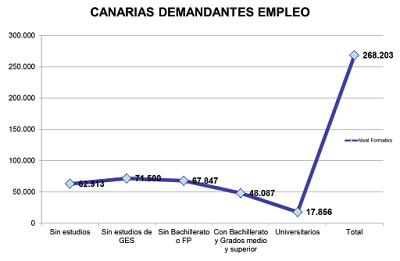 mitad de las personas demandantes de empleo en Canarias no tenían la titulación